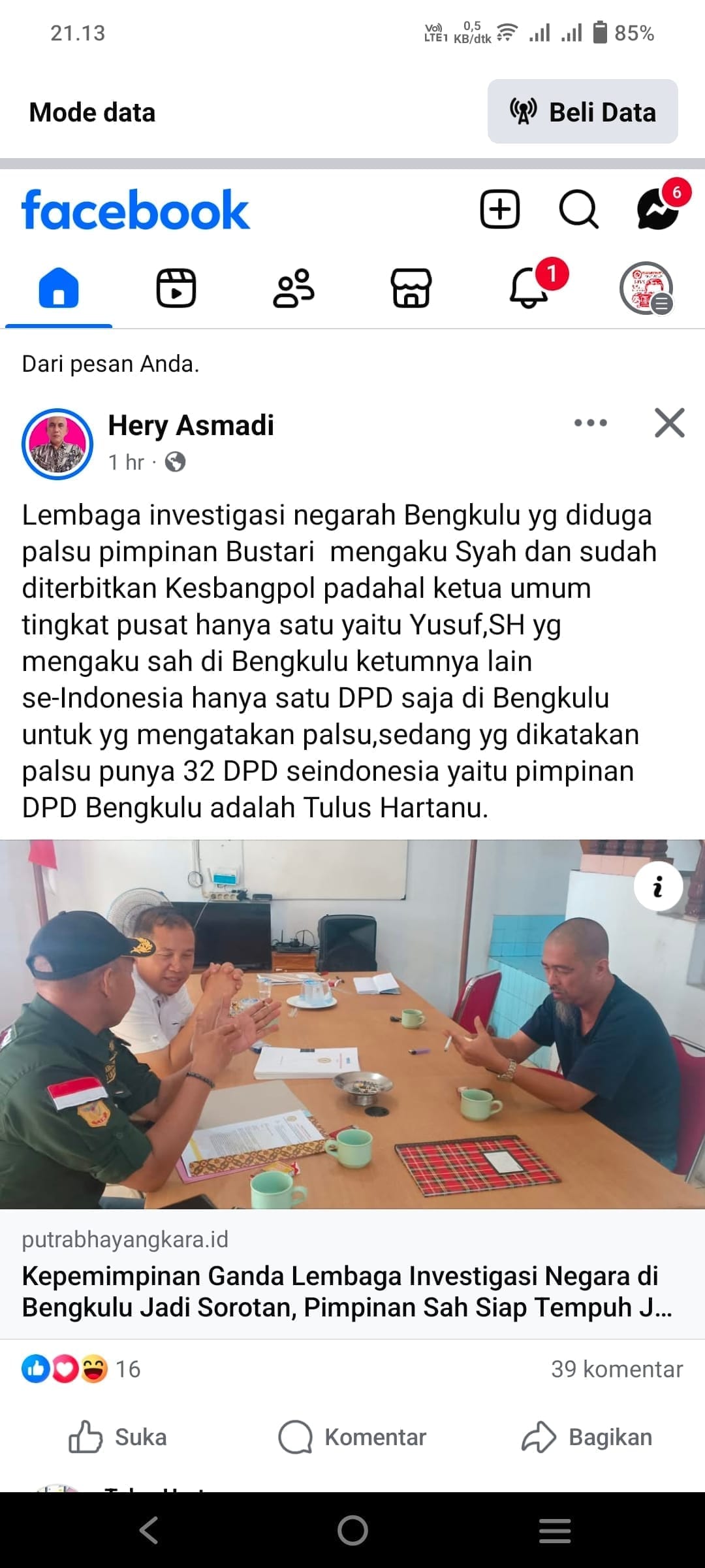 Jakarta, 29 Oktober 2025 — Dunia maya kembali diguncang isu sensitif setelah muncul pengakuan sepihak dari akun Facebook bernama Hery Asmadi yang mengaku sebagai anggota Lembaga Investigasi Negara (LIN).