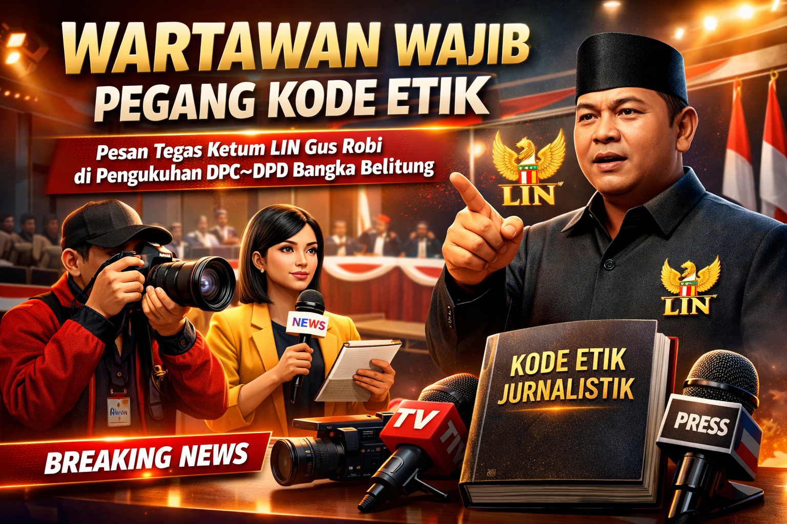 Bangka Belitung — Ketua Umum Lembaga Investigasi Negara (LIN) Gus Robi menegaskan pentingnya menjaga integritas dan profesionalitas dalam dunia jurnalistik saat melakukan kunjungan sekaligus pengukuhan pengurus DPC dan DPD LIN Bangka Belitung.