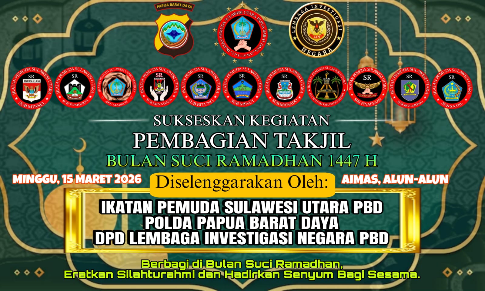 Aimas, – Dalam rangka menyemarakkan Bulan Suci Ramadan 1447 Hijriah, DPD Lembaga Investigasi Negara (LIN) Papua Barat Daya akan menggelar kegiatan pembagian takjil kepada masyarakat.
