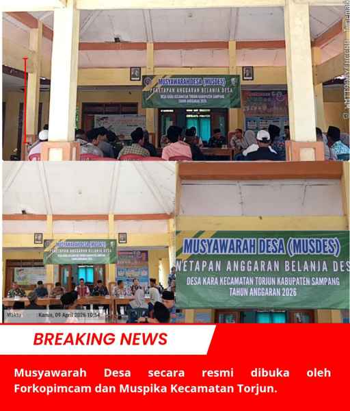 SAMPANG||Buserinvestigasi.id— Pemerintah Desa Kara, Kecamatan Torjun, Kabupaten Sampang, melaksanakan Musyawarah Desa (Musdes) dalam rangka pembahasan dan penetapan Anggaran Pendapatan dan Belanja Desa (APBDes) Tahun Anggaran 2026, Kamis (9/4/2026).