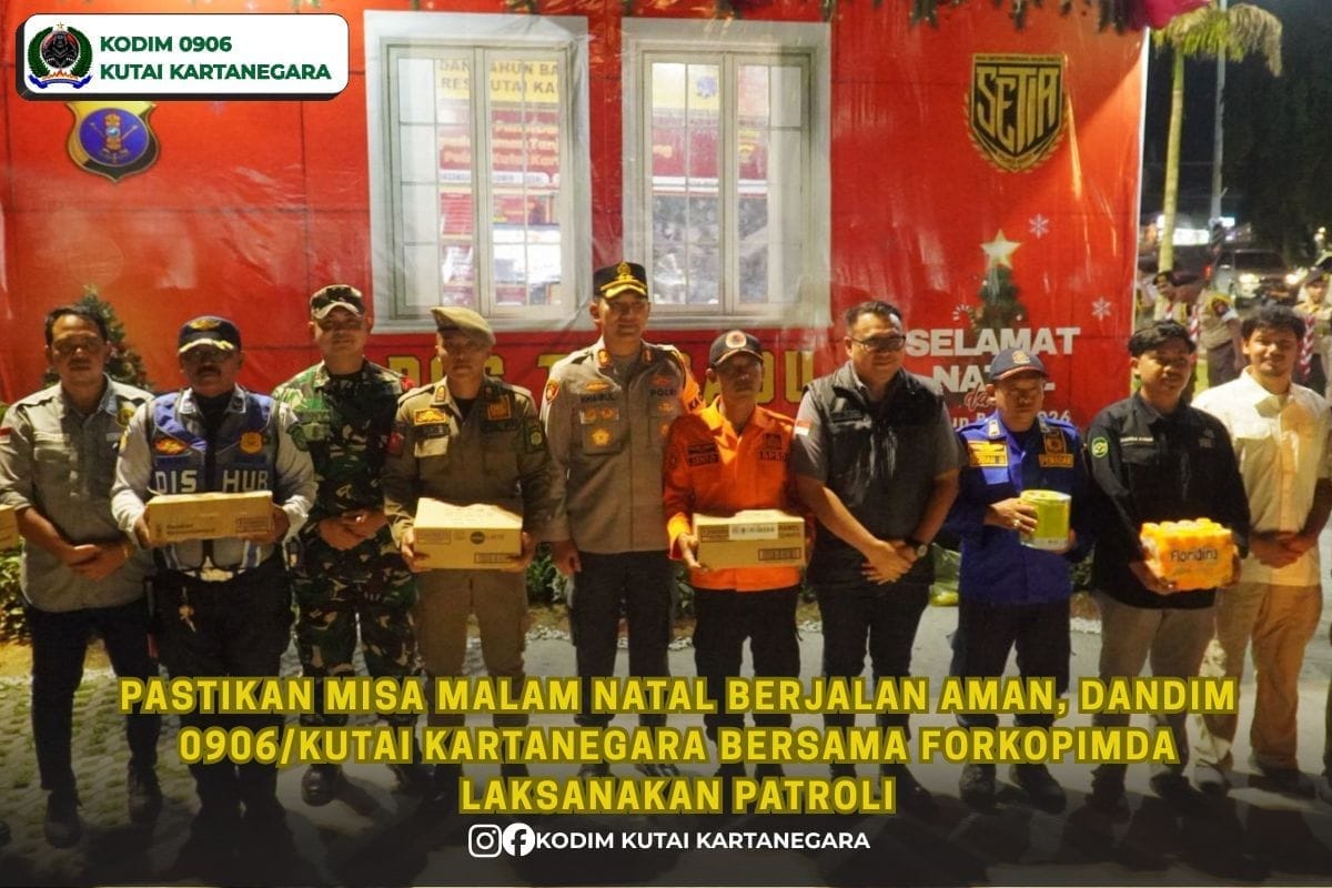 Kutai Kartanegara, buserinvestigasi.id– Komandan Kodim 0906/Kutai Kartanegara (Kkr), Letkol Arm. Benny Budiman, S.A.P, bersama jajaran Forum Koordinasi Pimpinan Daerah (Forkopimda) Kabupaten Kutai Kartanegara pada rabu malam (24/12/25) melaksanakan patroli gabungan ke sejumlah gereja yang berada di wilayah Kecamatan Tenggarong, Kukar.