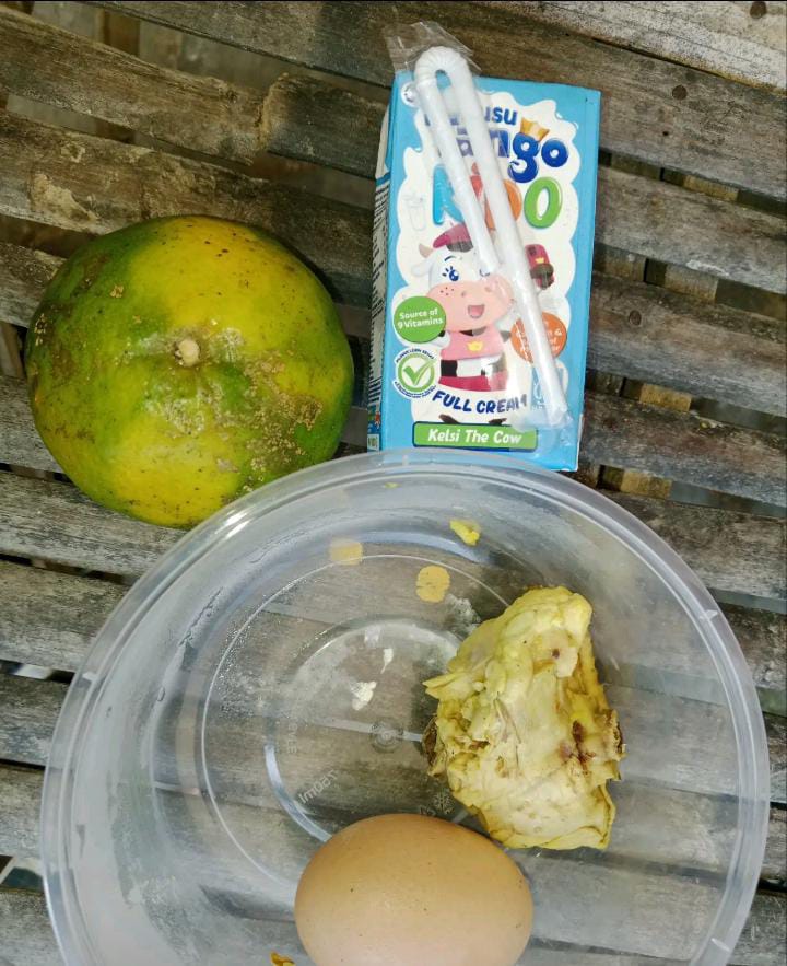 Anak-anak hanya mendapatkan paket sederhana berupa jeruk, susu kemasan kecil, potongan ayam, telur, serta wadah plastik kecil.