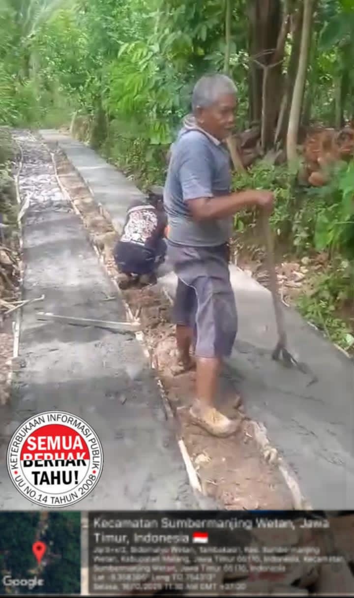 Malang – Proyek pembangunan infrastruktur di Desa Tambakasri, Kecamatan Sumbermanjing Wetan, Kabupaten Malang, diduga dikerjakan secara siluman tanpa papan nama Rencana Anggaran Biaya (RAB).