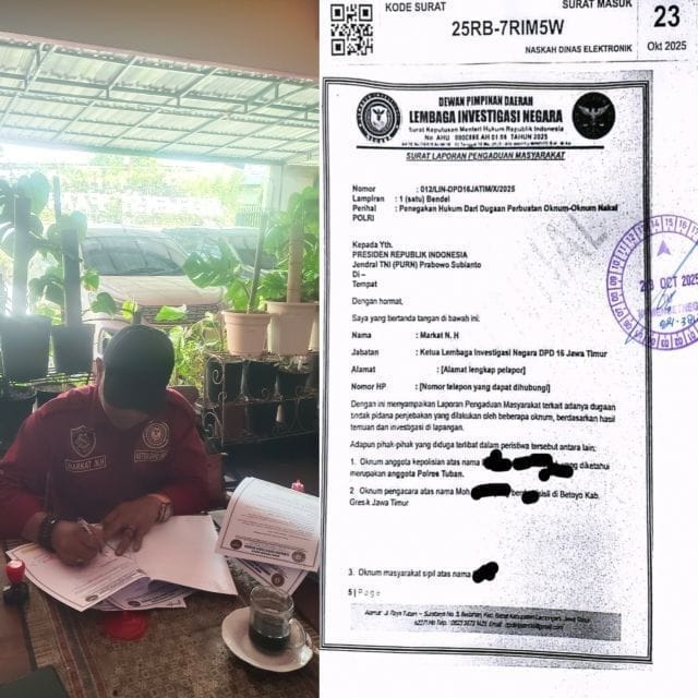 Surabaya — Ketua Lembaga Investigasi Negara (LIN) DPD 16 Jawa Timur, Markat N. H, membongkar praktik keji dan terorganisir berupa penjebakan narkoba yang diduga melibatkan oknum polisi, penasehat hukum, serta warga sipil. Surat pengaduan kerasnya telah dikirim ke pucuk pimpinan kepolisian, Mabes Polri, Kompolnas, bahkan Presiden RI, menuntut penyelidikan tuntas atas skandal yang mengguncang institusi hukum di Jawa Timur ini.