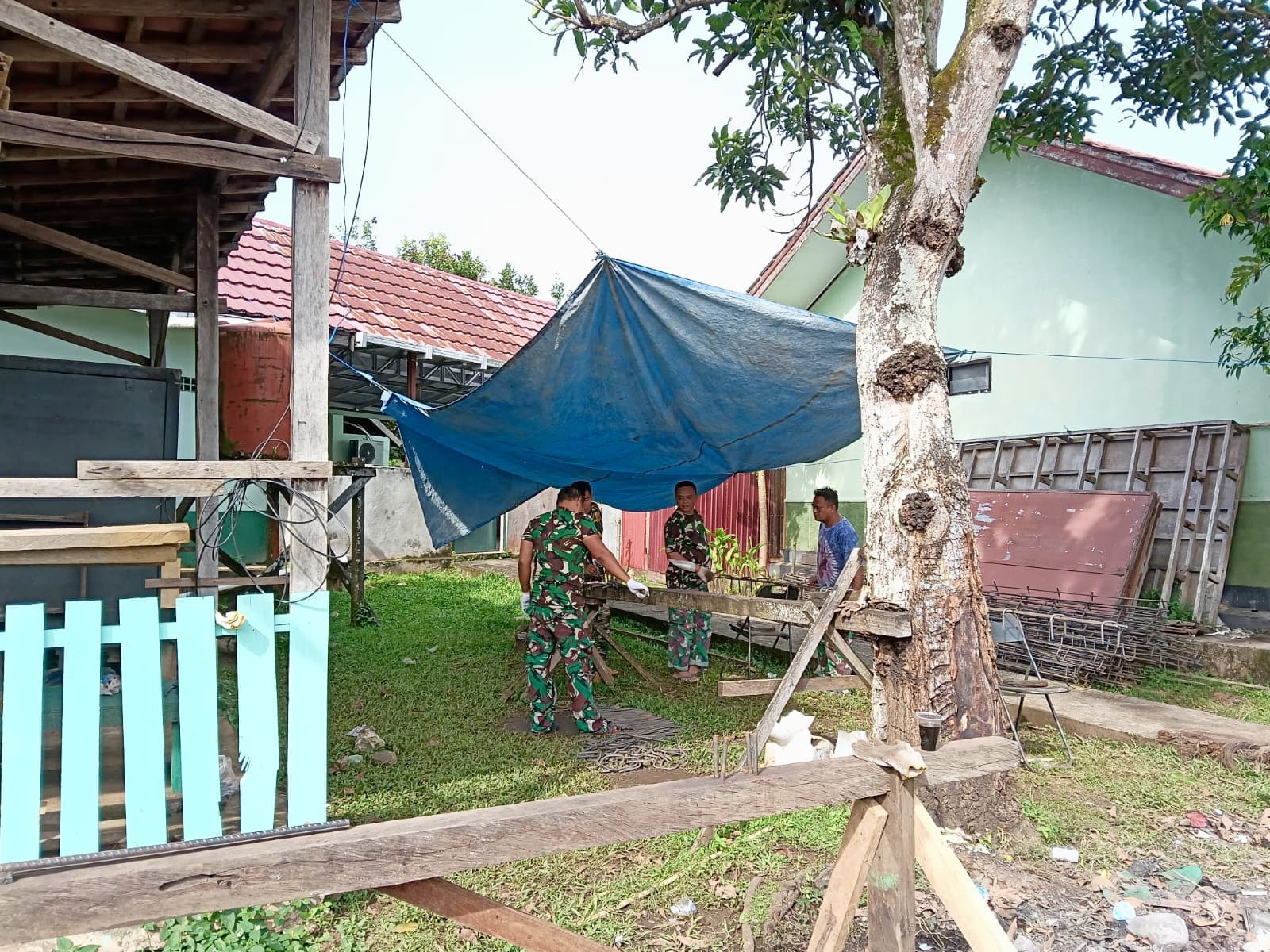 KUTAI BARAT. BUSETINVESTIGASI – Satgas TMMD Wiltas Ke-127 Kodim 0912/Kbr melaksanakan kegiatan pemotongan dan perakitan kerangka besi sebagai bagian dari pengerjaan semenisasi jalan di Kampung Linggang Amer, Kecamatan Linggang Bigung, Kamis (12/2/2026).