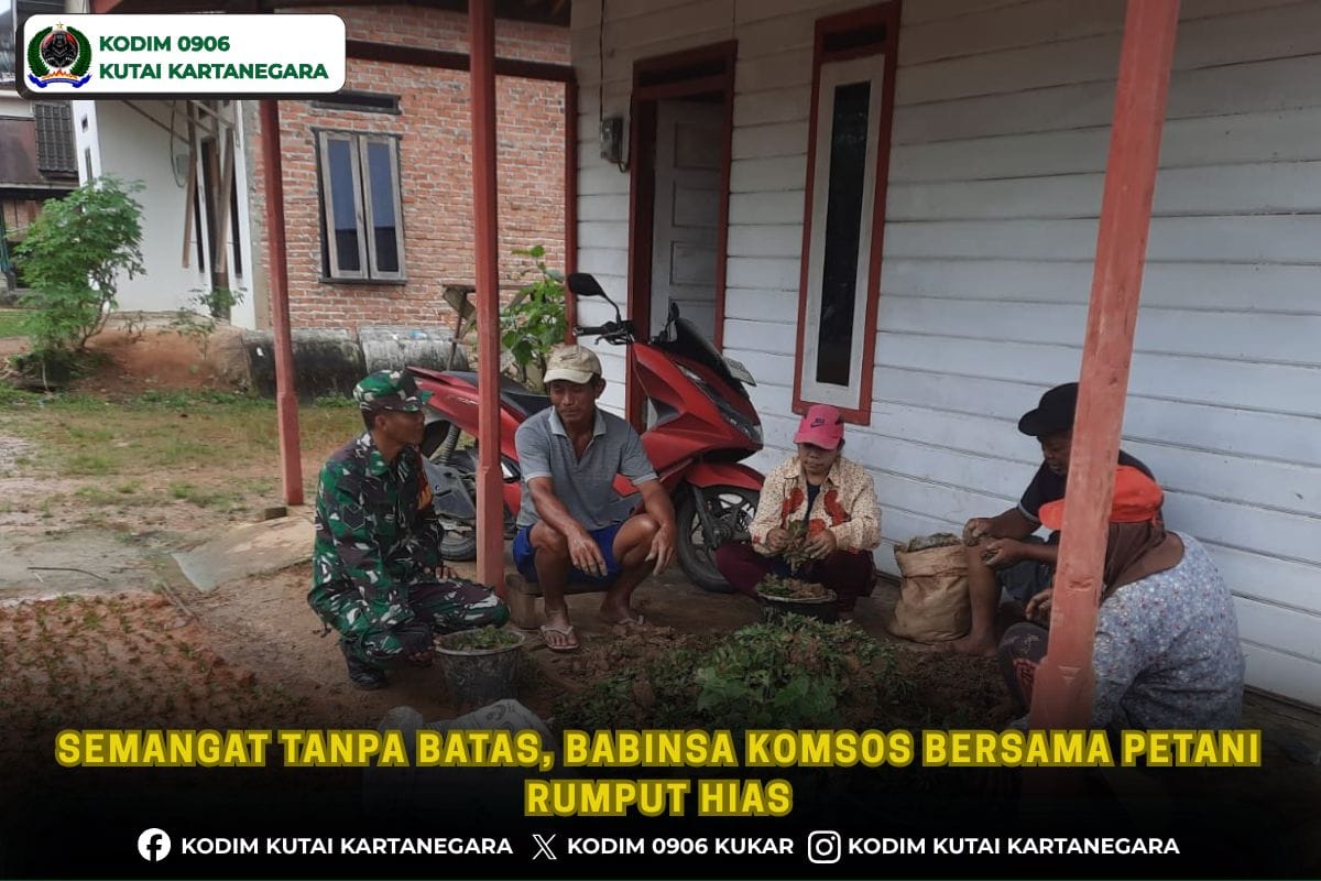 Kutai Kartanegara. buserinvestigasi.id- Untuk mempererat hubungan silaturahmi yang baik dengan masyarakat sekaligus mendukung perekonomian warga yang ada dibinaan, anggota Babinsa koramil 0906-14/Tenggarong Seberang Serma Sukirin melakukan melakukan komunikasi sosial (komsos) bersama petani rumput hias yang berada di rt 4 blok A Dusun Rejo Makmur Desa Karang Tunggal kecamatan Tenggarong Seberang, Kamis 26/2/26.