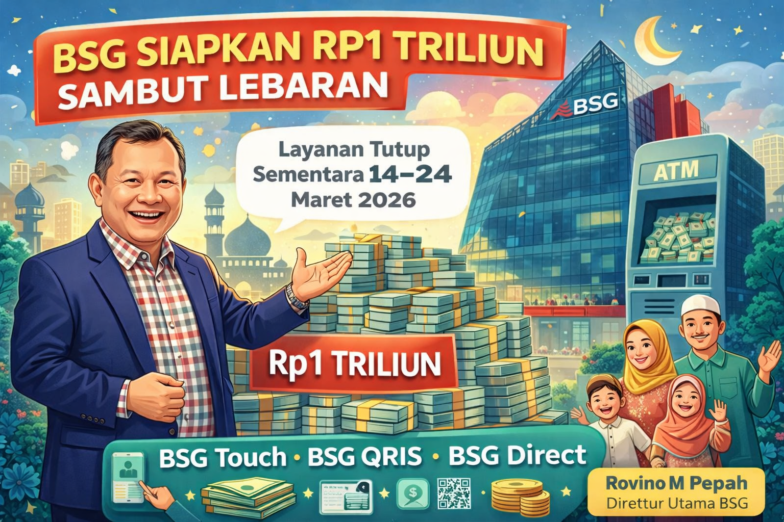 Sejalan dengan kebijakan pemerintah terkait libur nasional dan cuti bersama Idul Fitri, BSG melakukan penyesuaian operasional layanan perbankan. Seluruh kantor cabang tidak melayani operasional mulai 14 Maret hingga 24 Maret 2026.
