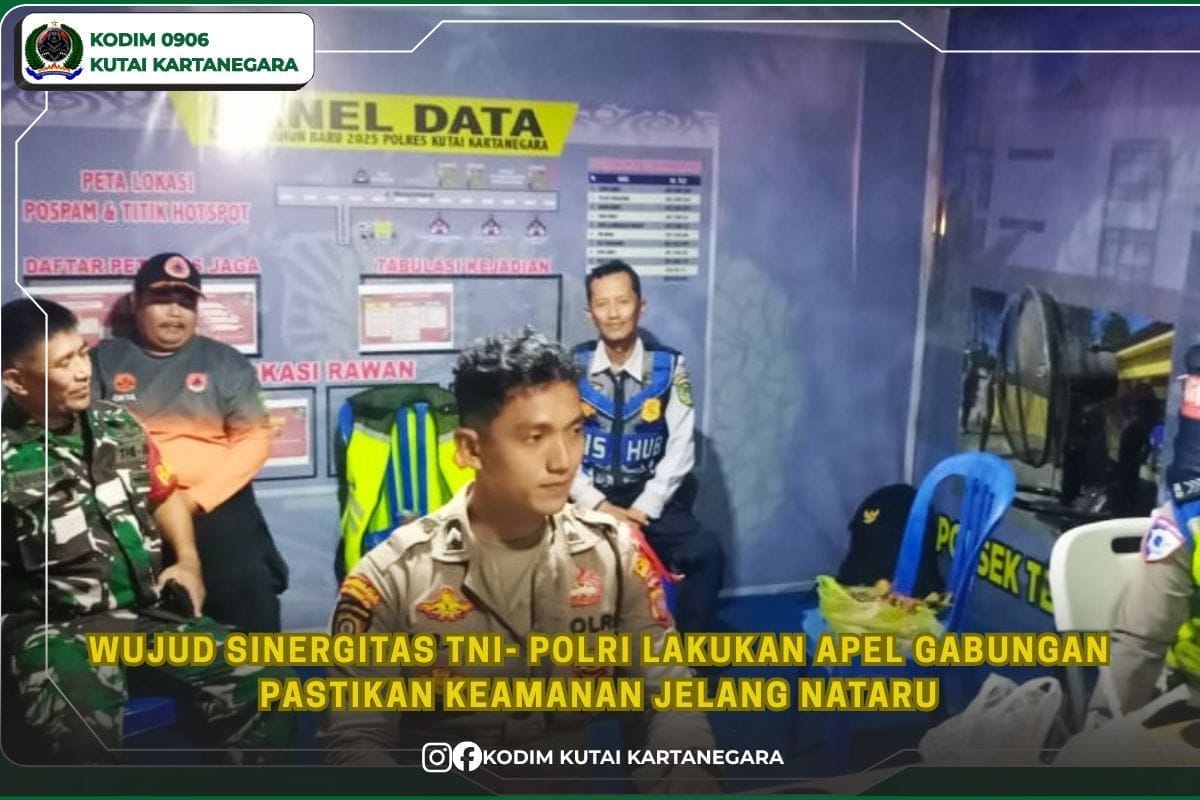 Kutai Kartanegara, buserinvestigasi.id-   Anggota Babinsa Koramil 0906-01/Tenggarong Serka Awaludin bersama sejumlah personel dari Polres, Dishub, dan Satpol PP Kukar, melakukan apel gabungan dalam rangka memastikan keamanan jelang Natal dan Tahun Baru (Nataru). Apel gabungan ini diadakan di Pos Terpadu yang berada dijalan Maduningrat Kelurahan Panji Kecamatan Tenggarong pada selasa malam (23/12/25).
